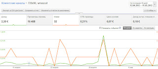 В принципе, многие известные блоггеры (Терехов, Сосновский, Скорняков и др.) используют данный формат рекламы на своих блогах. Цена там существенная и на этом фоне, тот же LinkWall, выглядит куда как привлекательней имхо. В моём же случае, решение воспользоваться сервисом Nolix созрело на фоне слабой отдачи от блока AdSense формата 728х90. Вот его статистика за последнее 30 дне.